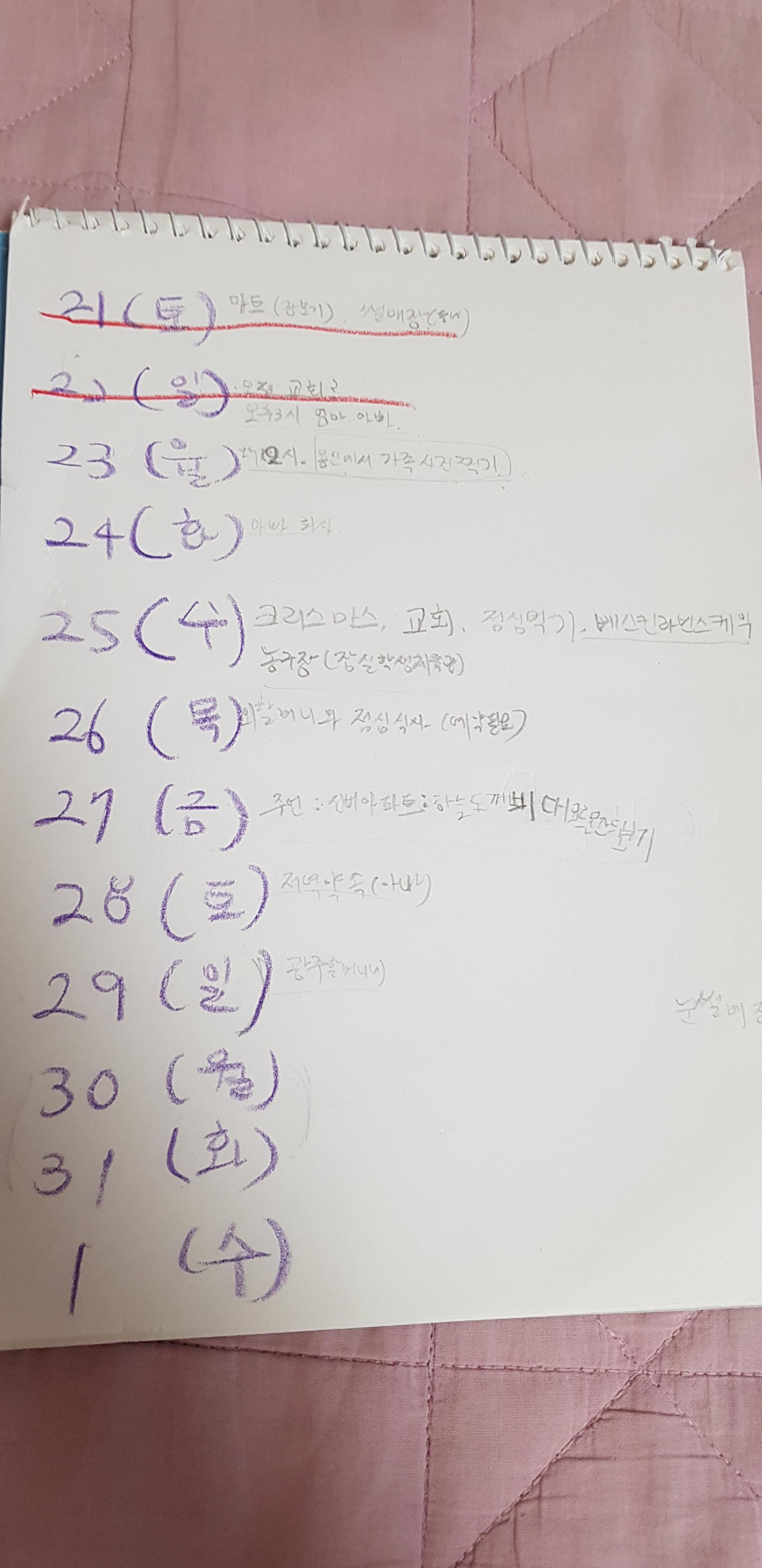 12월 20일 야근하고 저녁에 오니 아빠랑 7살첫째랑 둘이 같이 나름 계획표를 세워놨다고 보여주더라.